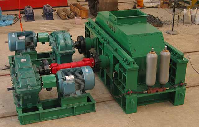 產(chǎn)品簡介 該機工作原理與輥壓機相近,采用了料層擠壓破碎的理念,其主體是由一對相互平行、水平安裝的圓柱形輥子組成,分別由兩套彼此獨立的動力裝置驅(qū)動。當(dāng)這對輥子做相向運轉(zhuǎn)時,進入喂料口的物料受到輥子的擠壓、沖擊、磨削而細碎,并隨自身重力被旋轉(zhuǎn)的輥子甩出,向下卸落。